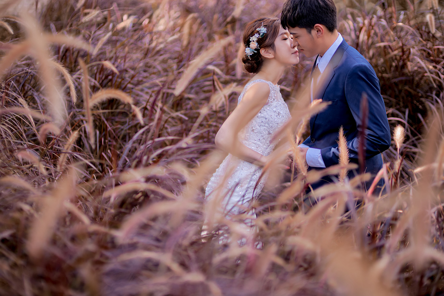 其實這天下大雨,躲雨時補妝,雨停的瞬間馬上衝去拍,過程有點克難,好不容易完成了這次的拍攝,很高興看見小倆口笑得那麼燦爛。